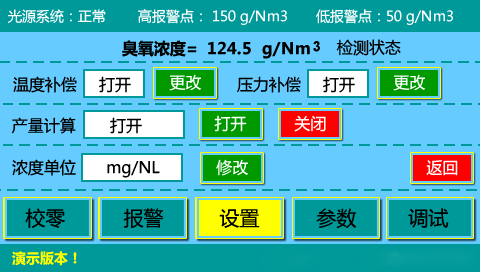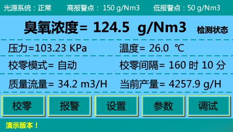 內(nèi)容界面:臭氧濃度、溫度、壓力;